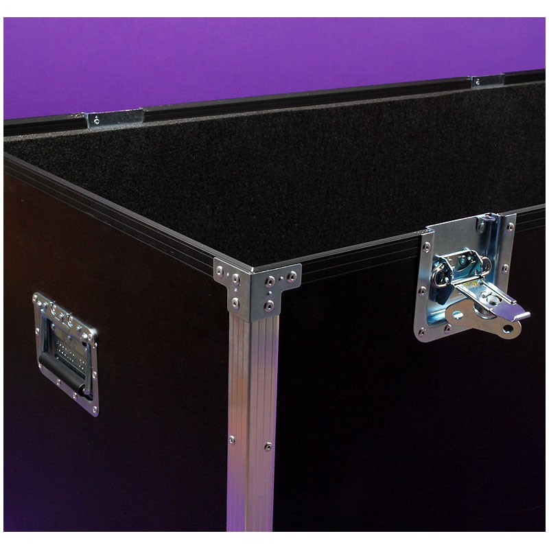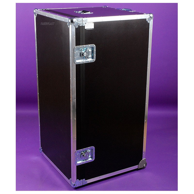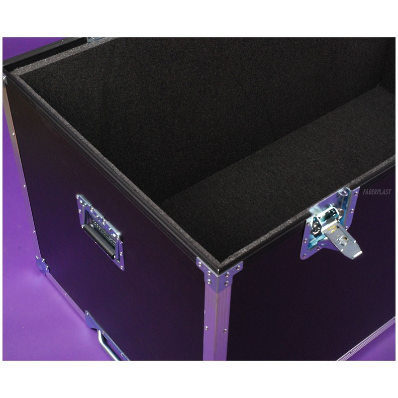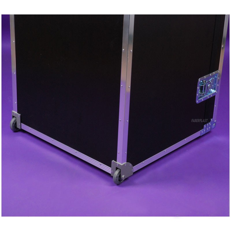 Maleta troley para transporte de atriles o vitrinas de metacrilato. Cajas especiales de alta resistencia para transportes pesados y delicados. Fabricadas en madera lacada en negro con esquinas reforzadas, espumas interiores, asas, cierres metalicos y ruedas para una fácil manipulacion del producto en ferias, viajes o transportes nacionales e internacionales.