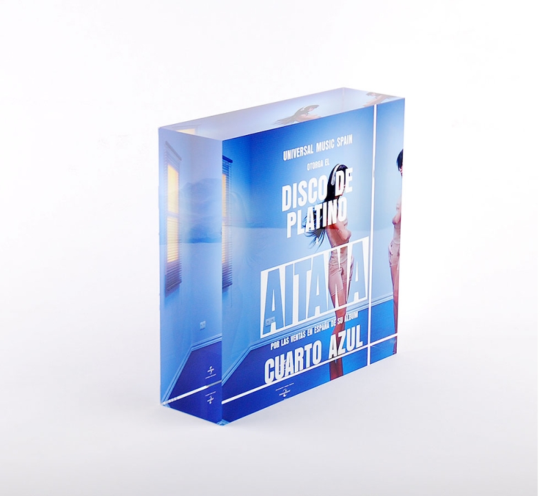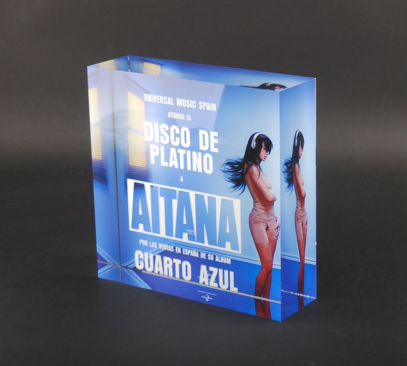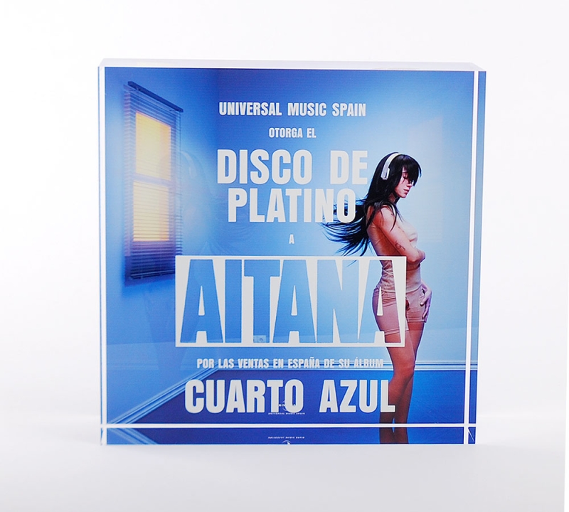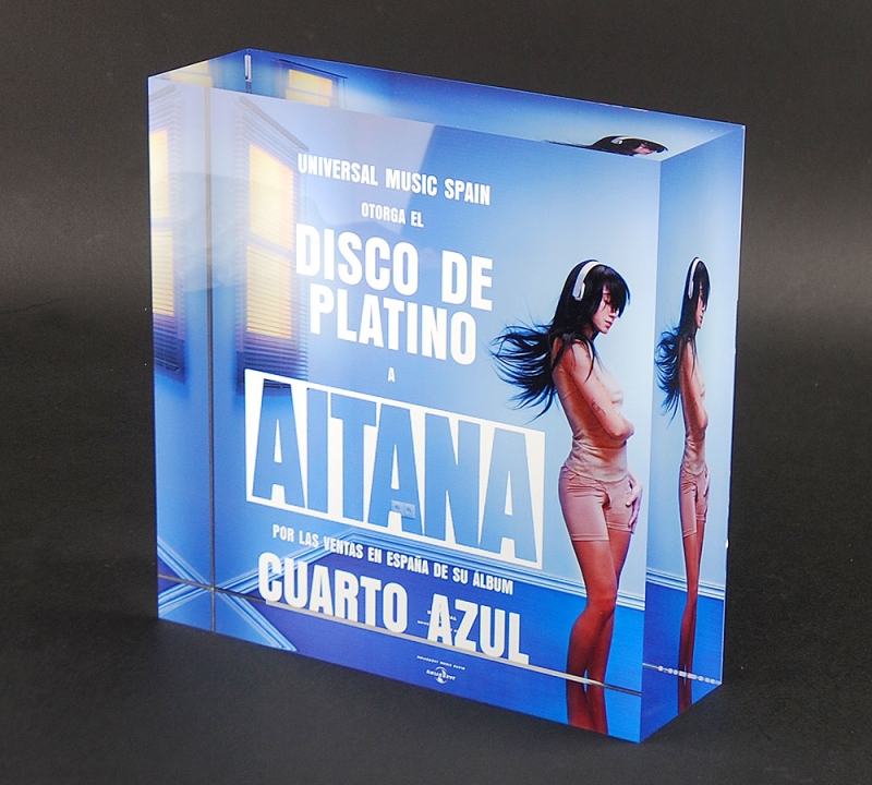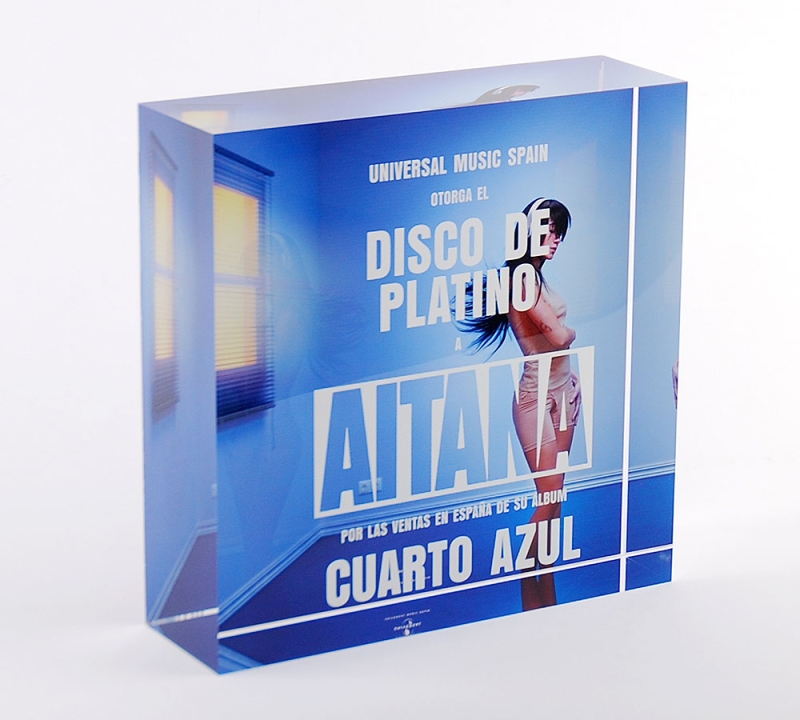 Bloque de metacrilato realizado ad-hoc para AITANA con motivo del disco de platino.