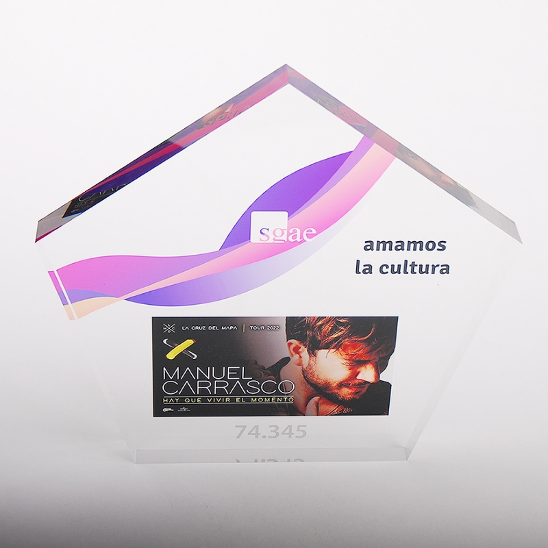 Bloque de metacrilato realizado de forma personalizada para SGAE - MANUEL CARRASCO.