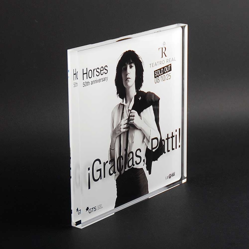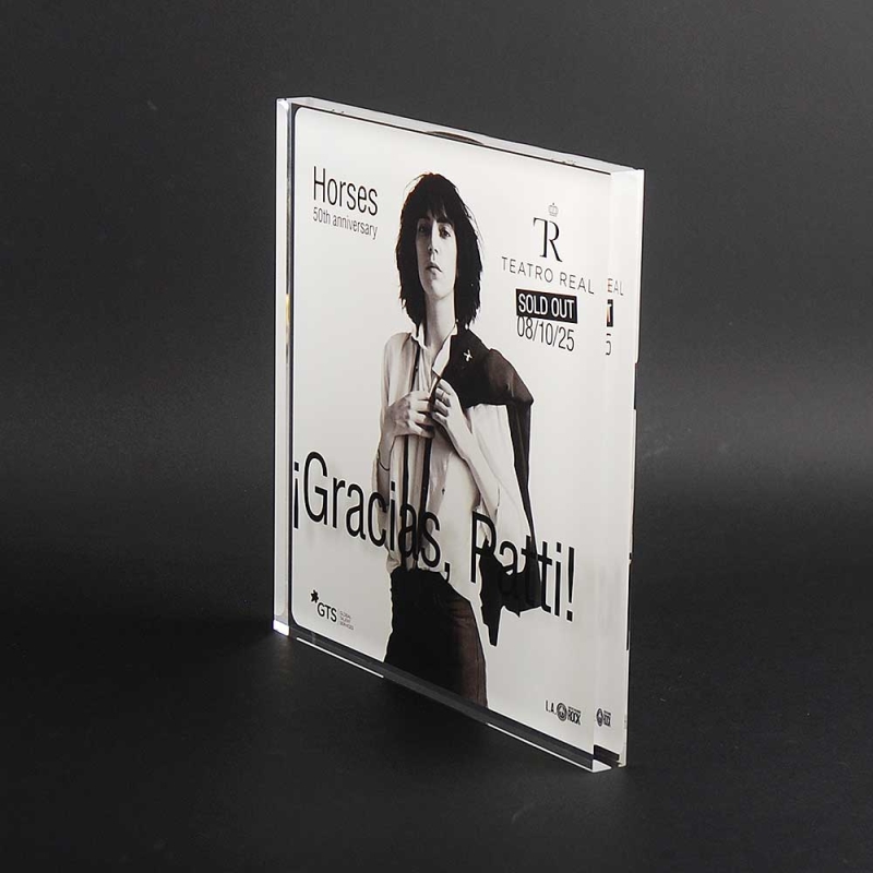 Bloque de metacrilato realizado ad-hoc con motivo del concierto aniversario PATTI SMITH.