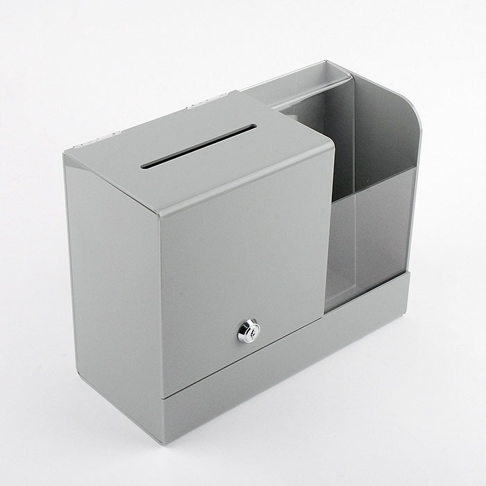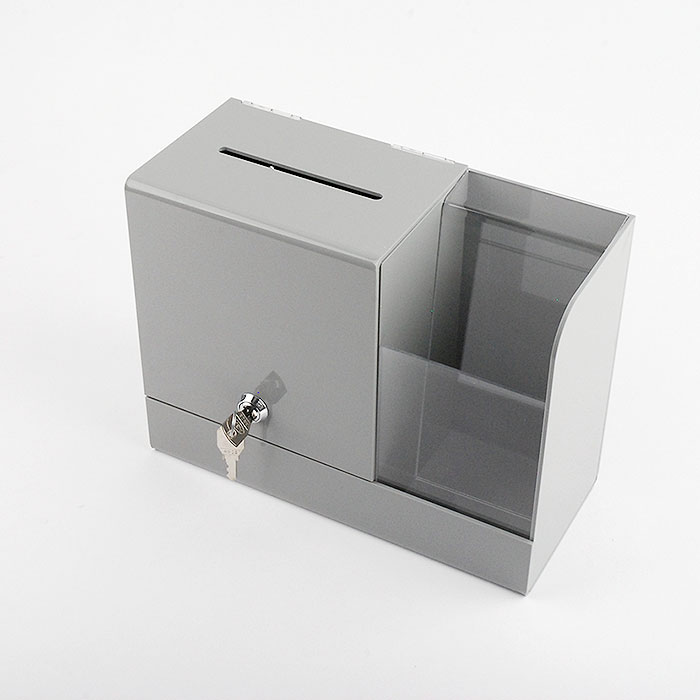 Buzón BAJO para sugerencias y publicidad con cajetín para folletos o impresos. Realizados en metacrilato de colores (plexiglas-PMMA)