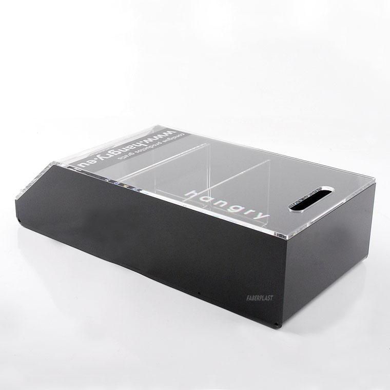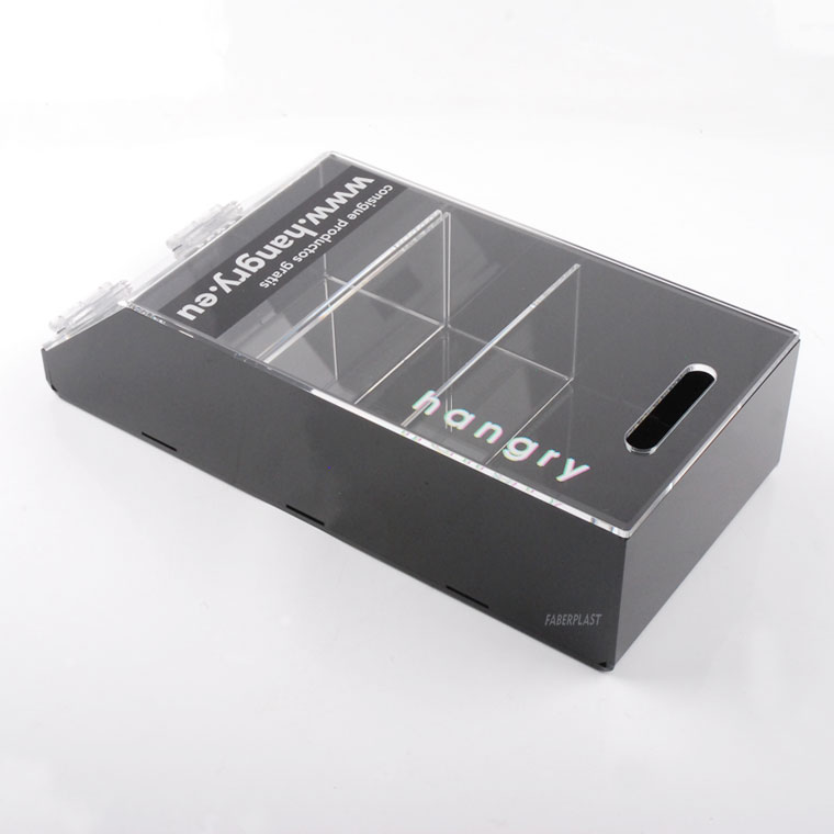 Caja metacrilato realizada de forma personalizada para la marca HANGRY.