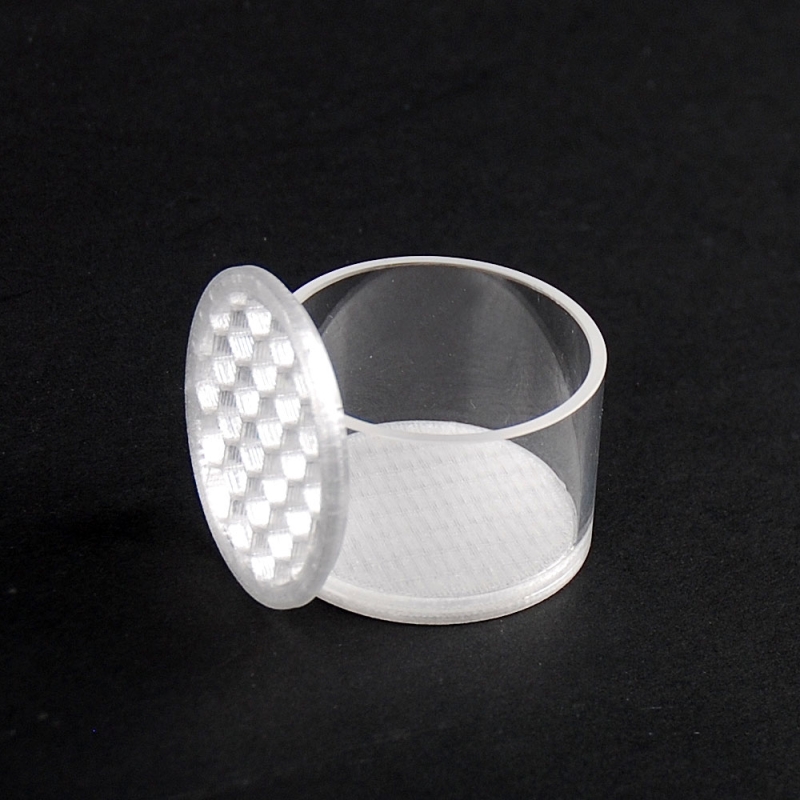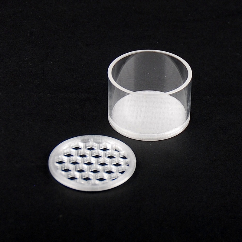 Caja con tapa REJILLA y tubo de metacrilato realizada a medida.