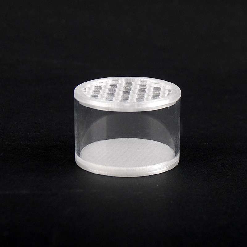 Cajas personalizadas en formato mini y fabricadas de forma artesana con tubo de metacrilato transparente (Plexiglas®-PMMA) y con PLA blanco (Acido poliláctico) con tecnología de calidad en impresión 3D FDM.