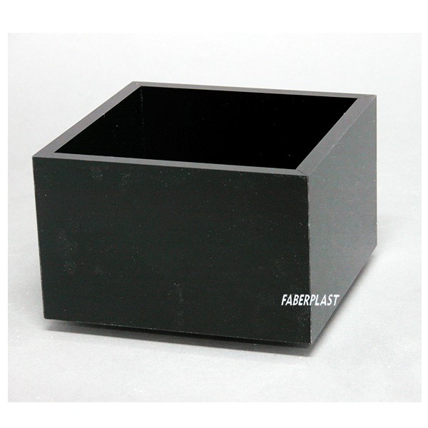 Jardinera modelo ZEN fabricada de forma artesana con placas de metacrilato negro alto brillo (Plexiglas-PMMA), incluye huecos para drenaje en la base.