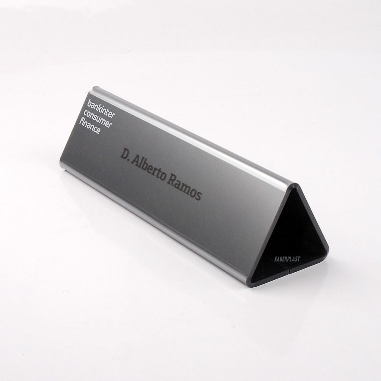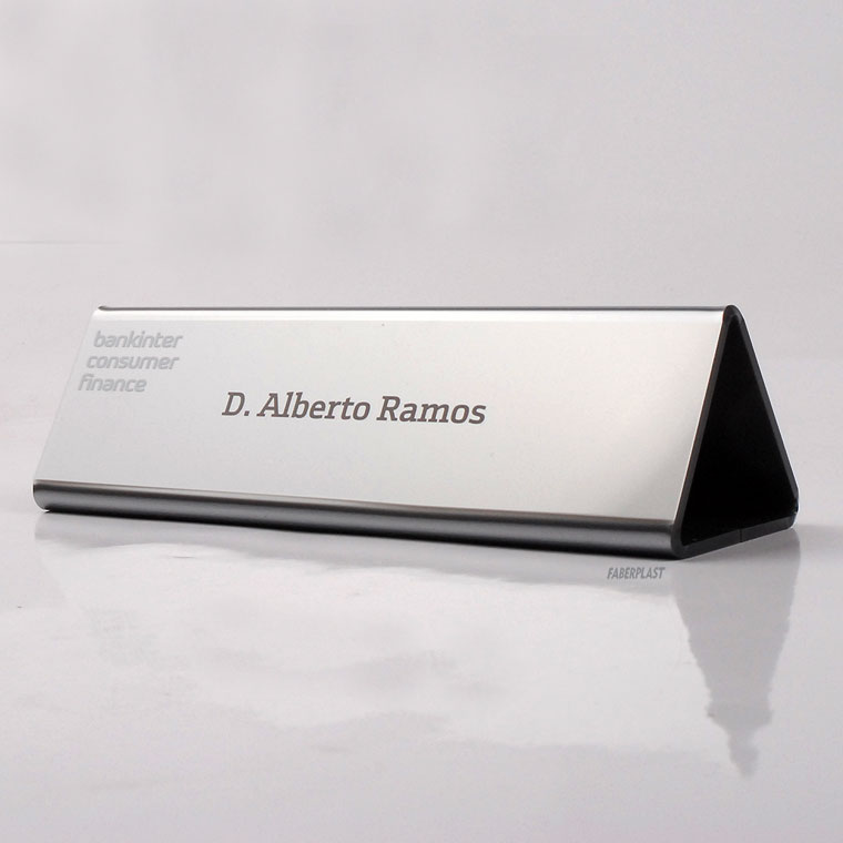 Fabricados con placas de metacrilato gris plata (Plexiglas-pmma) y rotulados con impresión digital directa de nombre de la entidad en blanco y negro para la persona, con visualizacion a dos caras.