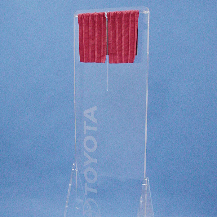 Monolito expositor de metacrilato realizado para evento de inauguración de la firma TOYOTA.