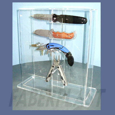 Expositor con formato vitrina para herramientas "GERBER" realizado en Metacrilato transparente ( Plexiglas - PMMA ).