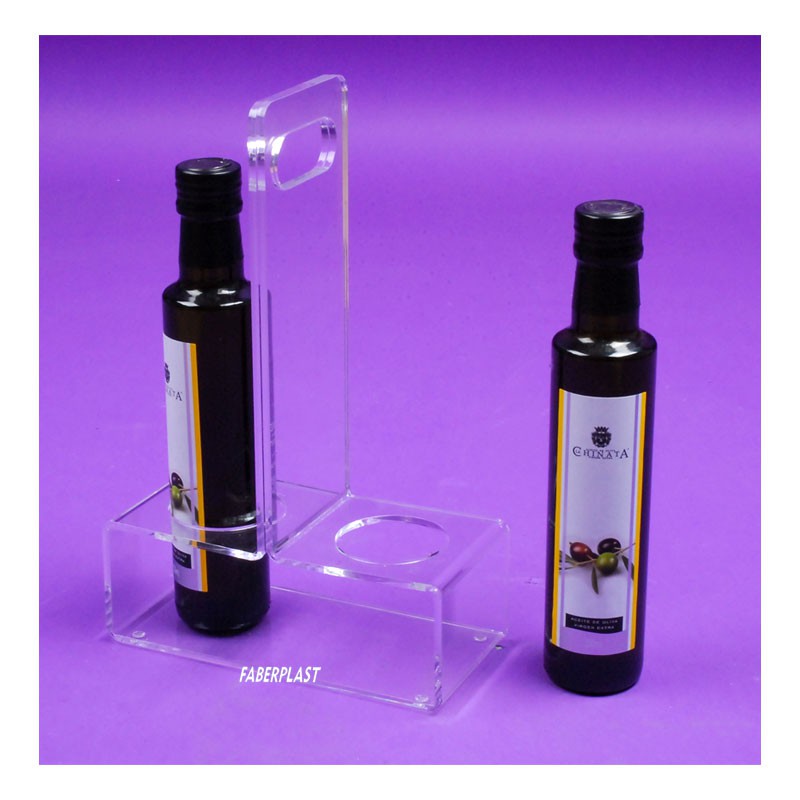 Soporte aceiteras-vinagreras de sobremesa para botellas de aceite, vinagre y otros tipos de botellas de restauración, hosteleria y consumo particular. Fabricado con placas de metacrilato transparente (Plexiglas-pmma).