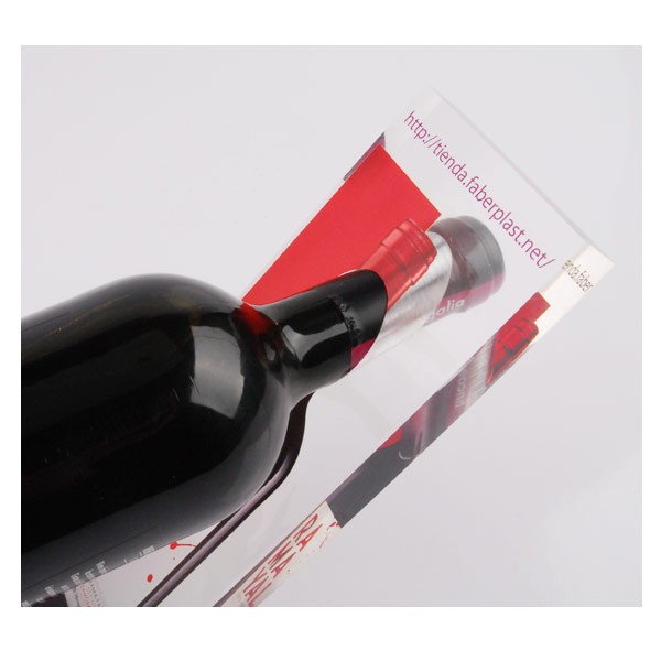 Soporte expositor GRAVITY WINE de metacrilato transparente (Plexiglas-PMMA) de alto espesor, para colocación o exposición de botellas de vino. ( No incluye impresión digital )
