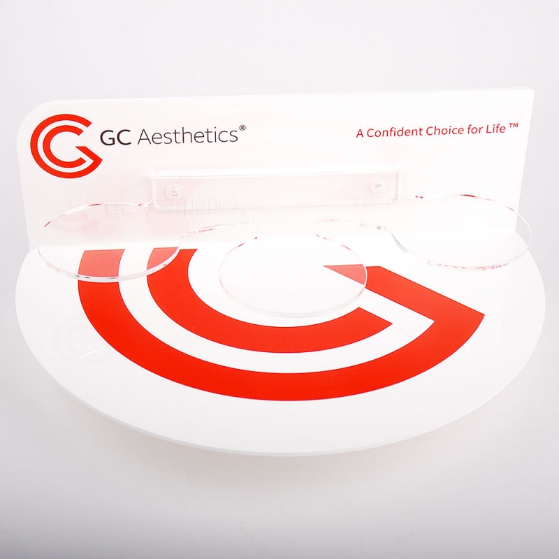 Expositor de producto PLV de metacrilato realizado de forma personalizada para la compañía GC AESTHETICS.