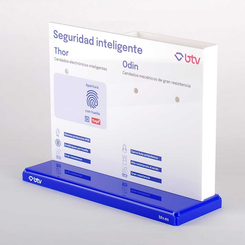 Expositor de metacrilato realizado ad-hoc para candados de la marca BTV.
