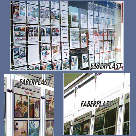 SISTEMA DE TENSORES MADECASA. Incluye Carpetas de Metacrilato (Plexglas-PMMA) para contener Ofertas (en diferentes formatos y tamaños) y Cableado de acero colocado en suelo y techo.
