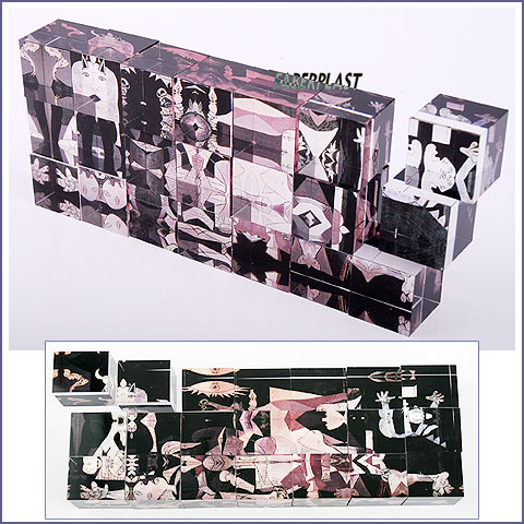 Puzzle impreso en digital formado por diferentes dados transparentes. Realizado con metacrilato incoloro (Plexiglas-PMMA) y con impresion digital directa en el metacrilato, sin adhesivos y con resolución de alta calidad.