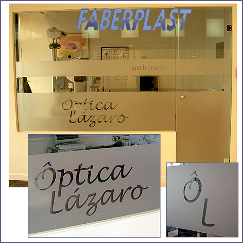 Interiores OPTICA LAZARO, realizado en Vinilo Translucido en cristalera.
