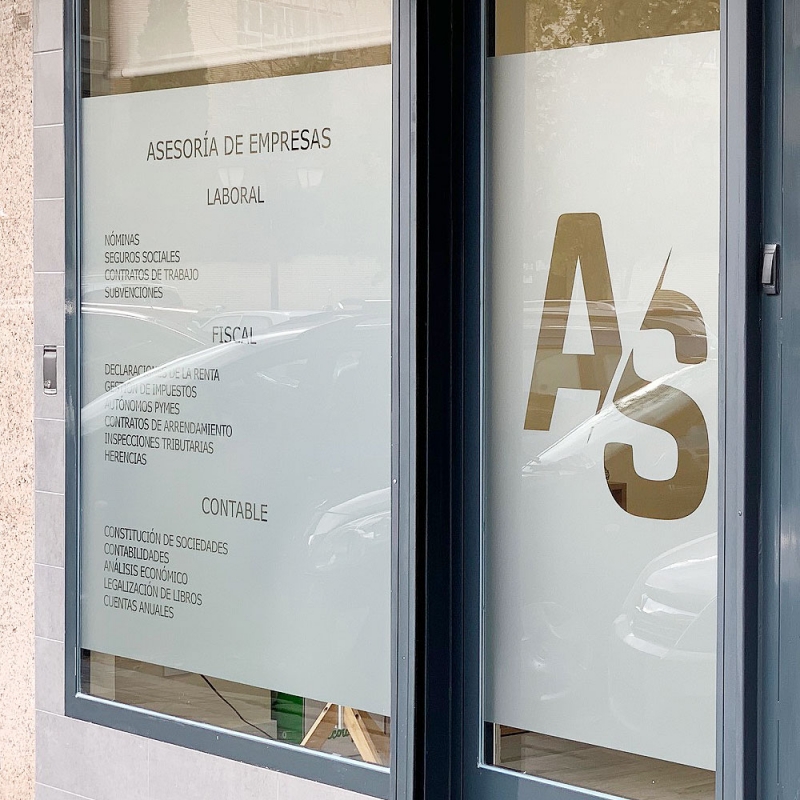 Rotulación de interior y exterior realizada en fachada y escaparates de cristal para la ASESORIA SETEM.