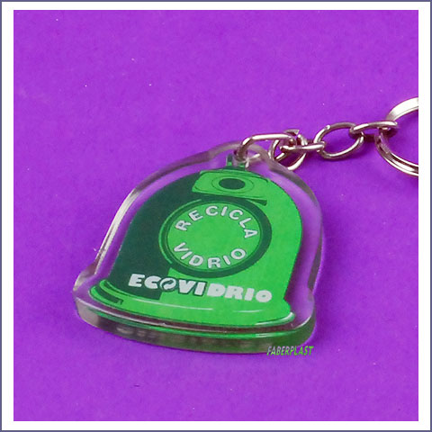 Llavero de metacrilato realizado a medida para la marca ECOVIDRIO.