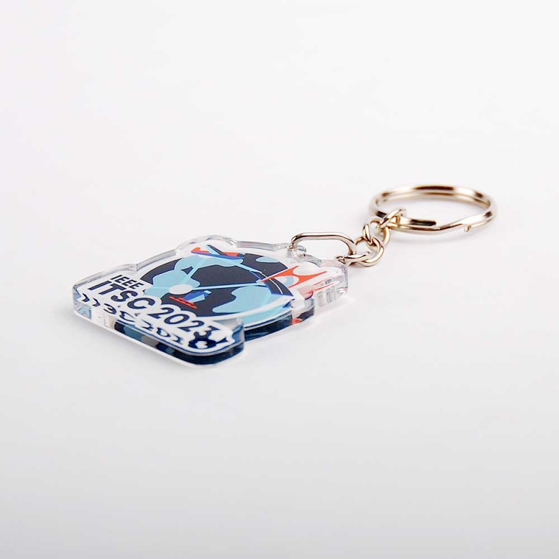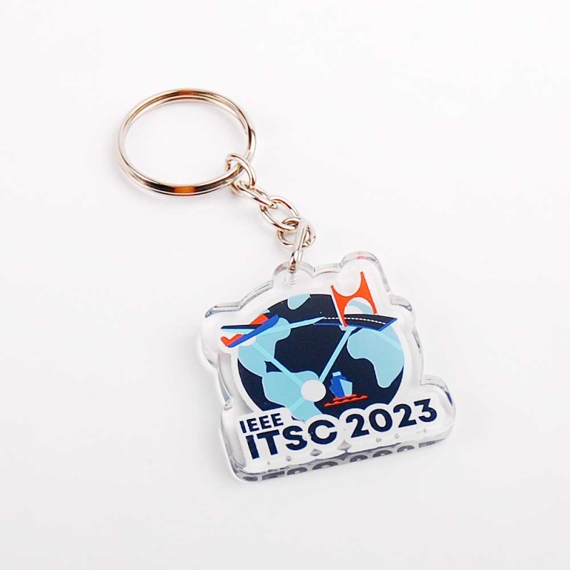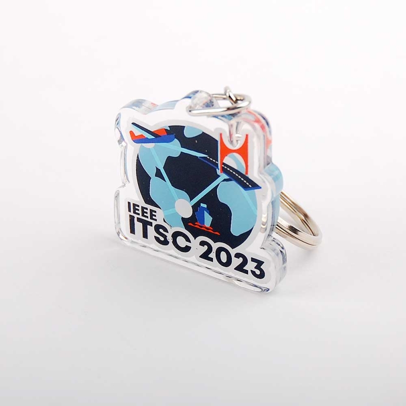 Llaveros de metacrilato realizados de forma personalizada para IEEE ITSC 2023.