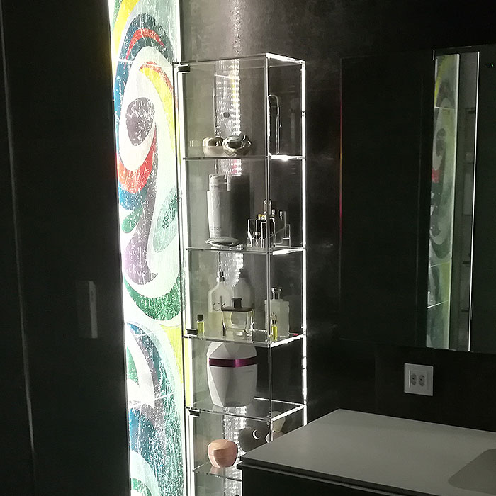 Mueble COLUMNA ALTA Y ESTRECHA BAÑO de metacrilato realizada a medida para domicilio particular.