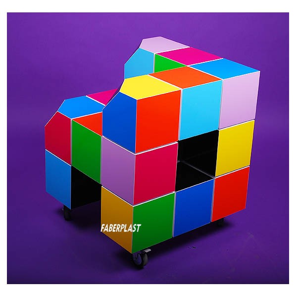Silla decorativa de foamapan (pvc espumado) con un diseño exclusivo formado por cubos de colores.Incluye hueco lateral para colocación de objetos.
