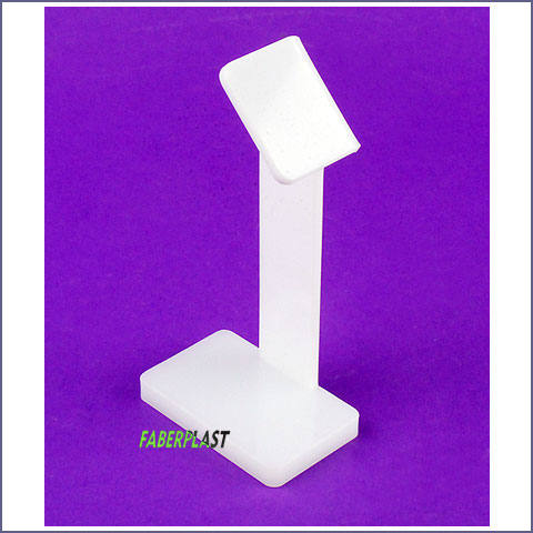 Soporte metacrilato realizado a medida para colocación y exposición de audífonos. Fabricado en formato para mesa o mostrador, con placas de metacrilato blanco (plexiglas-pmma) según diseño solicitado por el cliente.