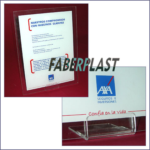 Placa corporativa realizada a medida para la compañía AXA. Modelo valido para colocación en sobremesa o pared, fabricado con placas de metacrilato transparente (plexiglas-pmma) y rotuladas con impresión digital.