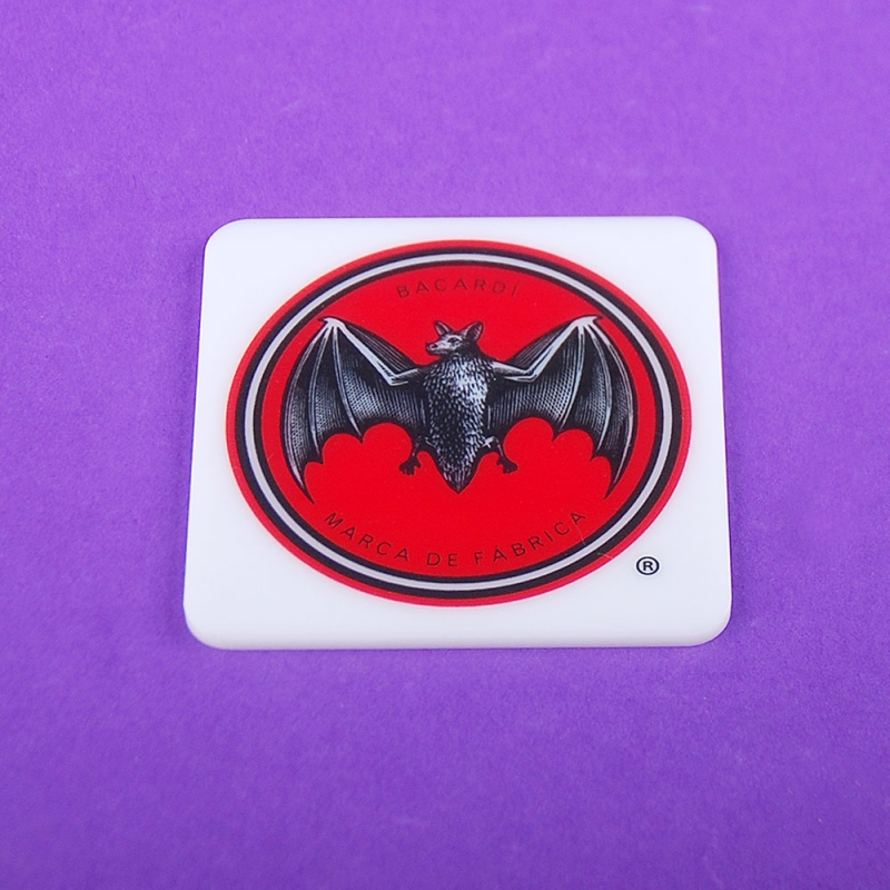 Posavaso impreso de metacrilato realizado ad-hoc para la marca BACARDI.