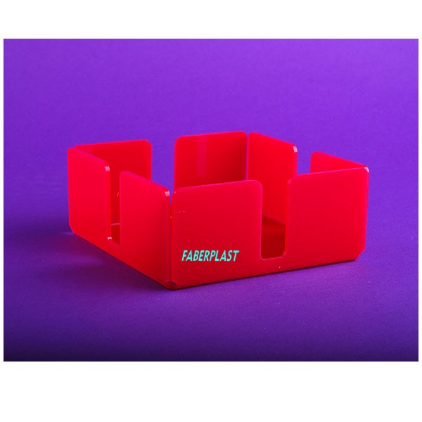 Caja abierta para servilletas de celulosa realizada con metacrilato color fucsia (plexiglas-pmma).