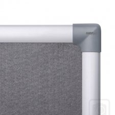 Tableros de anuncios, tablero de información, publicidad y notas realizado en formato para colgar tapizados con tela en color GRIS y perfil de aluminio anodizado color plata con esquineros de plastico protector.