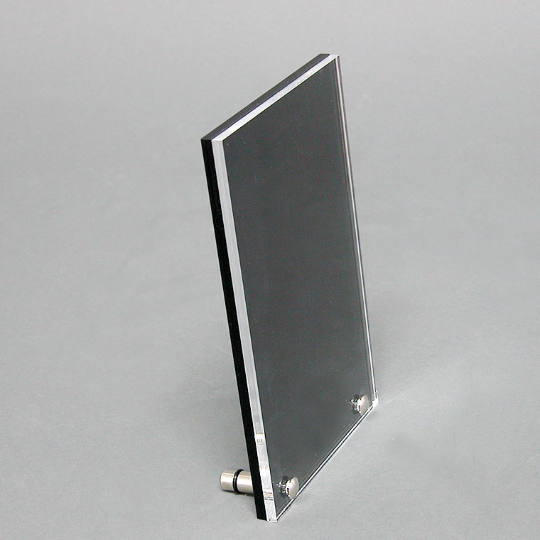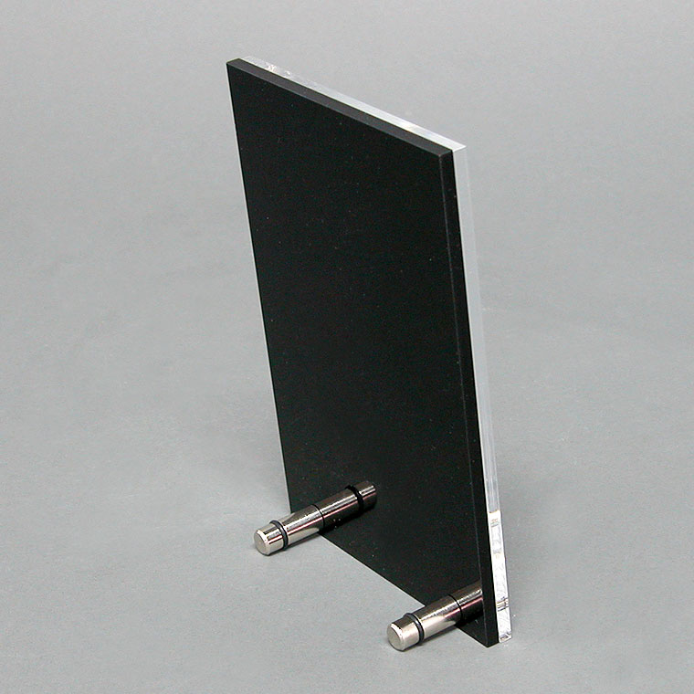 Fabricados con placas de metacrilato negro y metacrilato transparente (Plexiglas-pmma) unidas mediante soporte pasadores de acero que mantienen de forma inclinada el conjunto, siendo validos para colocar imágenes u hojas.