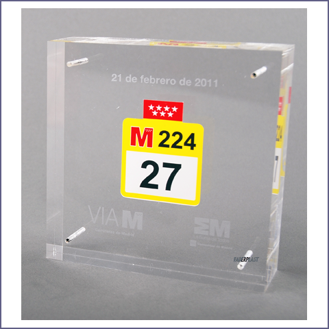 Doble pieza de metacrilato (Tombstone) fabricado a medida con motivo de la inauguración de la nueva carretera M224 de la Comunidad de Madrid.