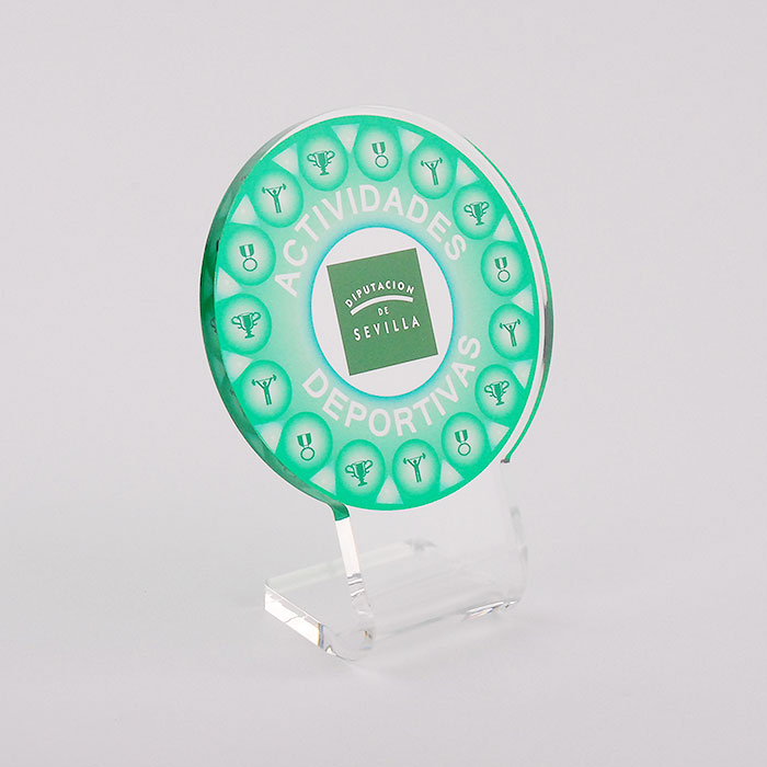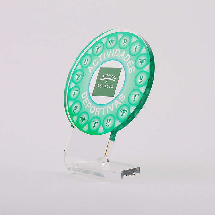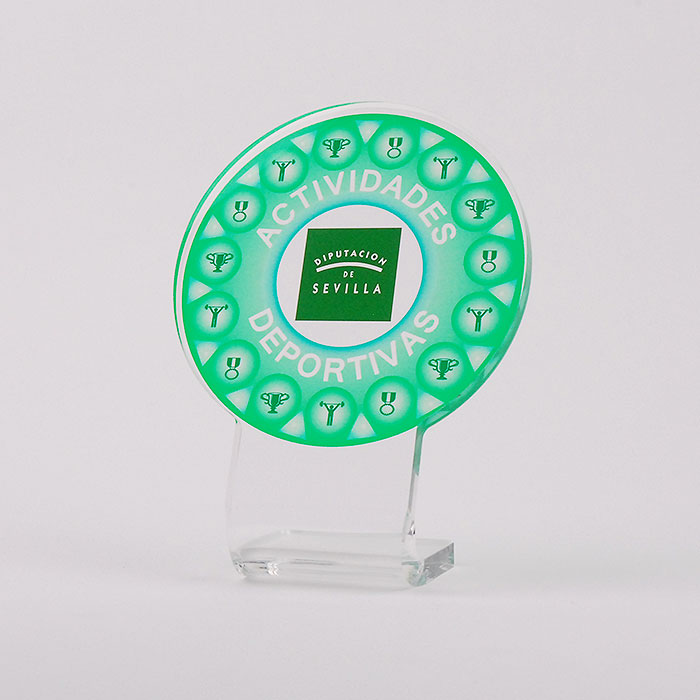 Trofeo de metacrilato realizado de forma personalizada para actividades deportivas de la DIPUTACIÓN DE SEVILLA.