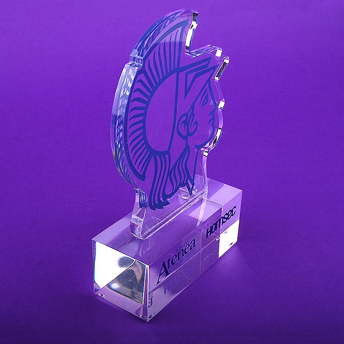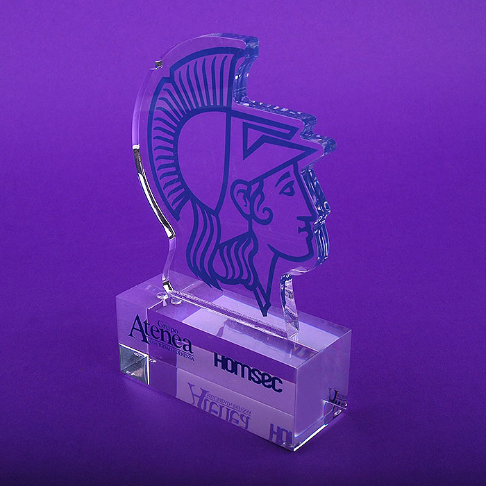 Trofeo de metacrilato realizado a medida para la compañía GRUPO ATENEA - HOMSEC.