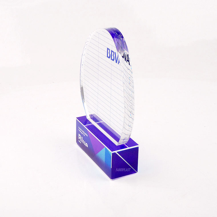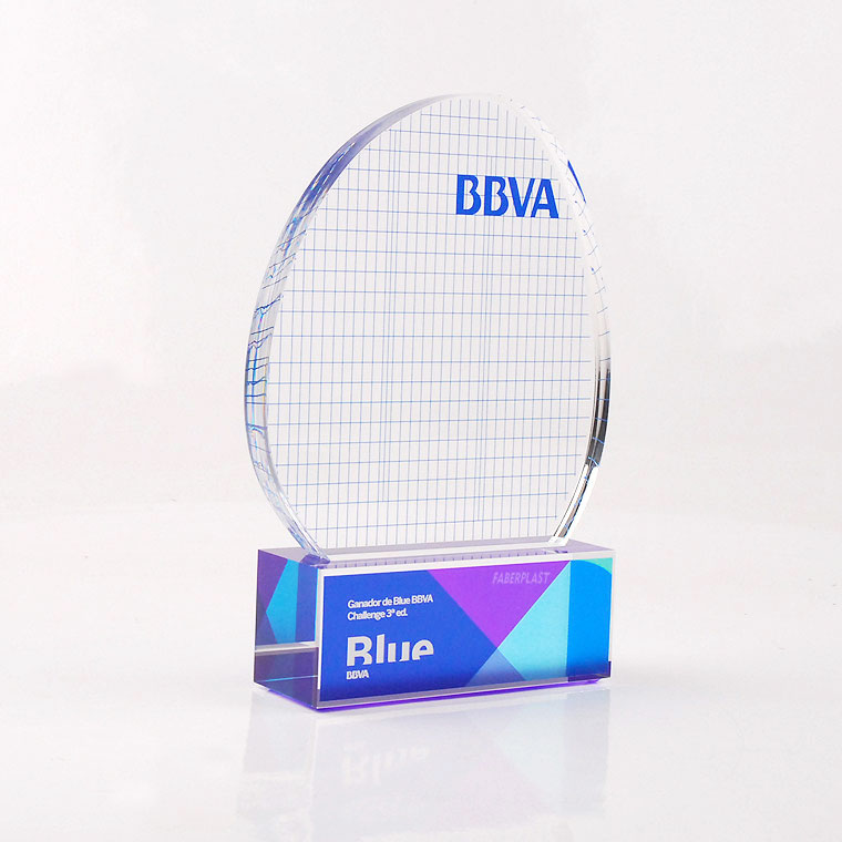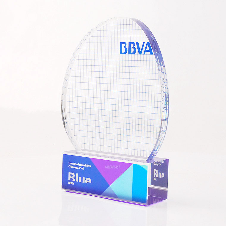 Trofeo metacrilato realizado a medida para el programa de emprendimiento Blue BBVA Challenge.