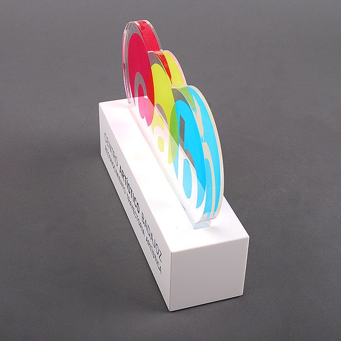 Trofeo de metacrilato realizado de forma personalizada para el CENTRO ARTÍSTICO DE BADAJOZ (CAB).