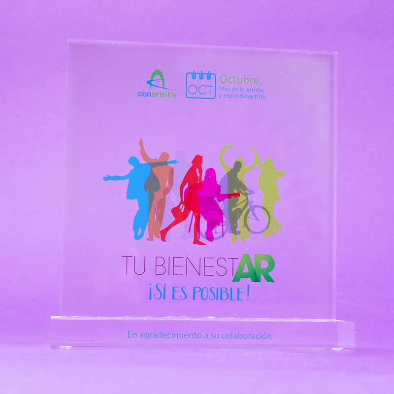 Trofeo de metacrilato realizado ad-hoc con motivo del evento de la asociación CONARTRITIS.