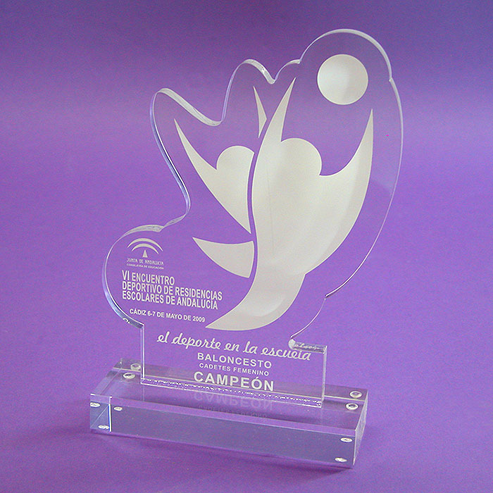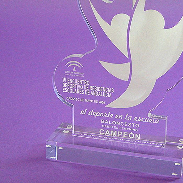 Trofeo metacrilato EL DEPORTE EN LA ESCUELA, realizado para la Junta de Andalucía.