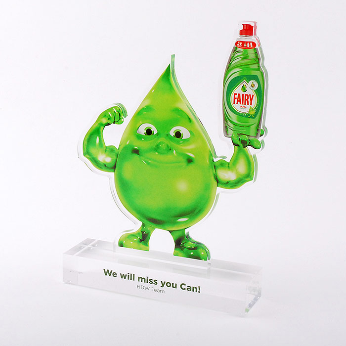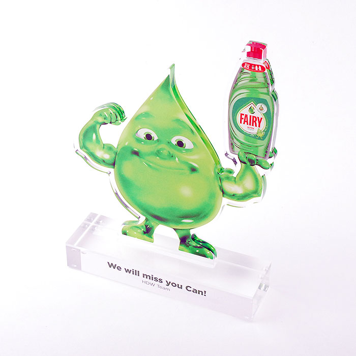 Trofeo de metacrilato realizado de forma personalizada para equipo de la marca FAIRY con motivo del evento HDW TEAM.
