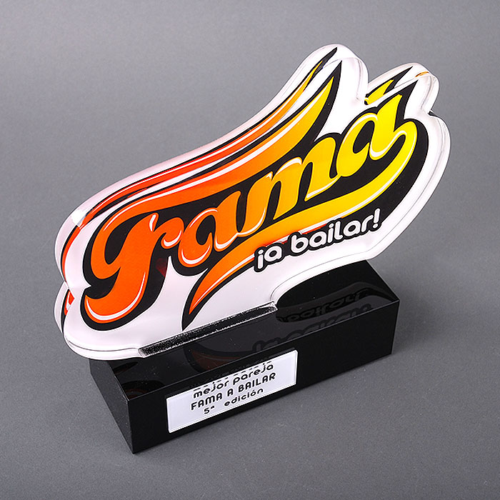 Trofeo de metacrilato realizado a medida para el concurso de televisión FAMA con motivo de la entrega de premios del programa.