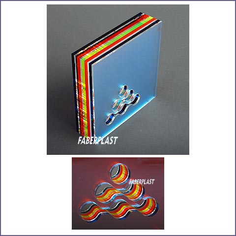 Fabricación con múltiples capas de placas de metacrilato translucido de colores (plexiglas-pmma) y con logo calado con tecnología láser.