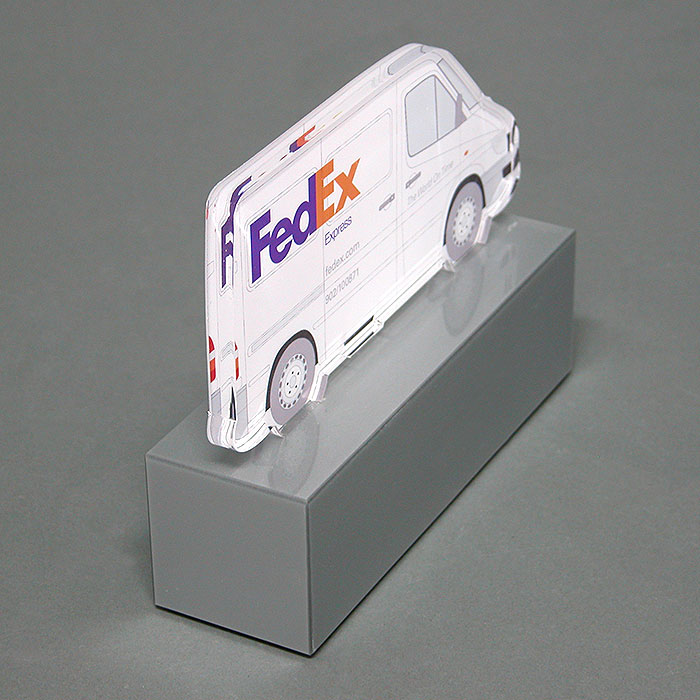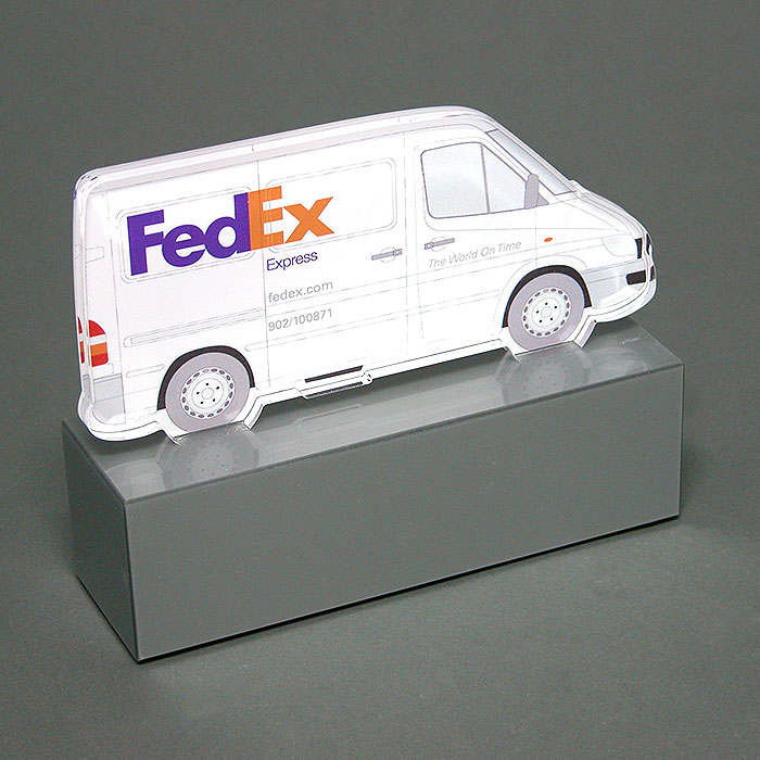 Trofeo metacrilato realizado de forma personalizada para la compañia internacional de transportes FEDEX.