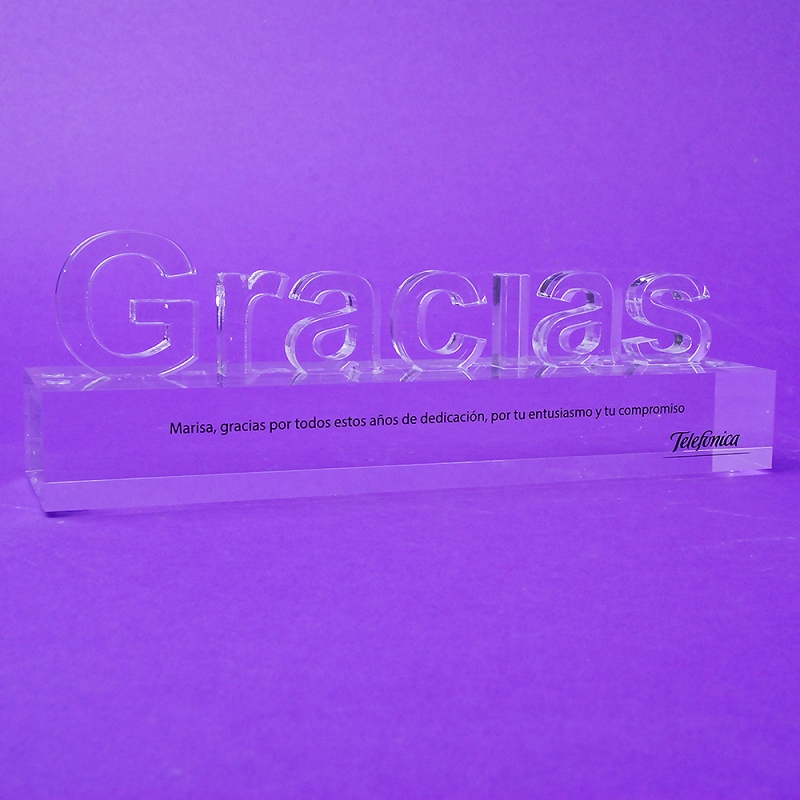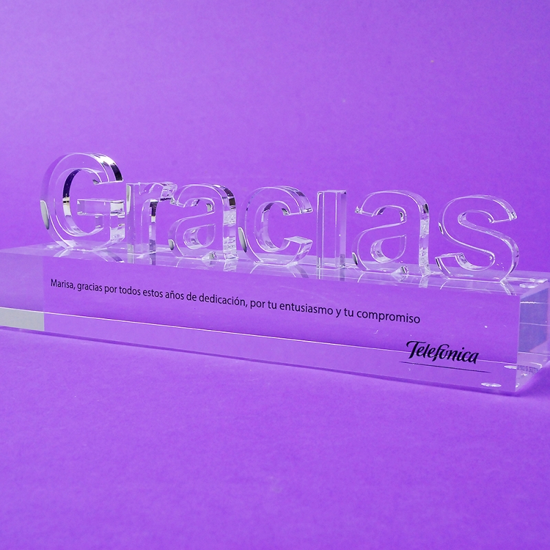 Trofeo de metacrilato realizado a medida para la compañía TELEFONICA.