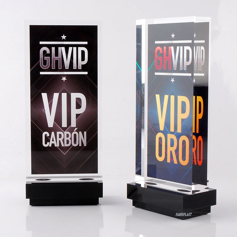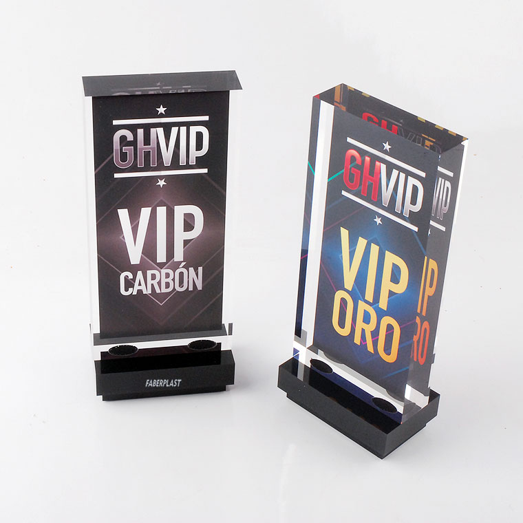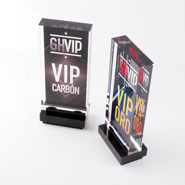 Trofeo metacrilato realizado a medida para el reality televisivo GRAN HERMANO VIP.