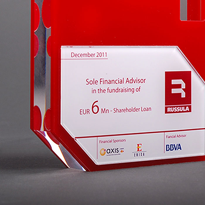 Trofeo realizado de forma personalizada para la entidad RUSSULA.