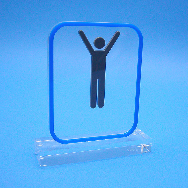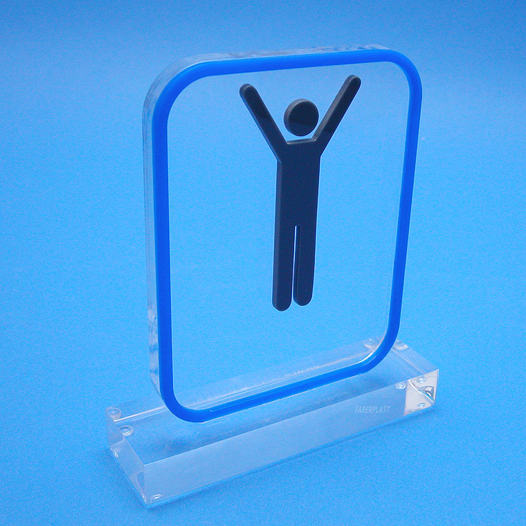 Trofeo de metacrilato realizado de forma personalizada para la compañía SEUR con elemento en forma de icono.