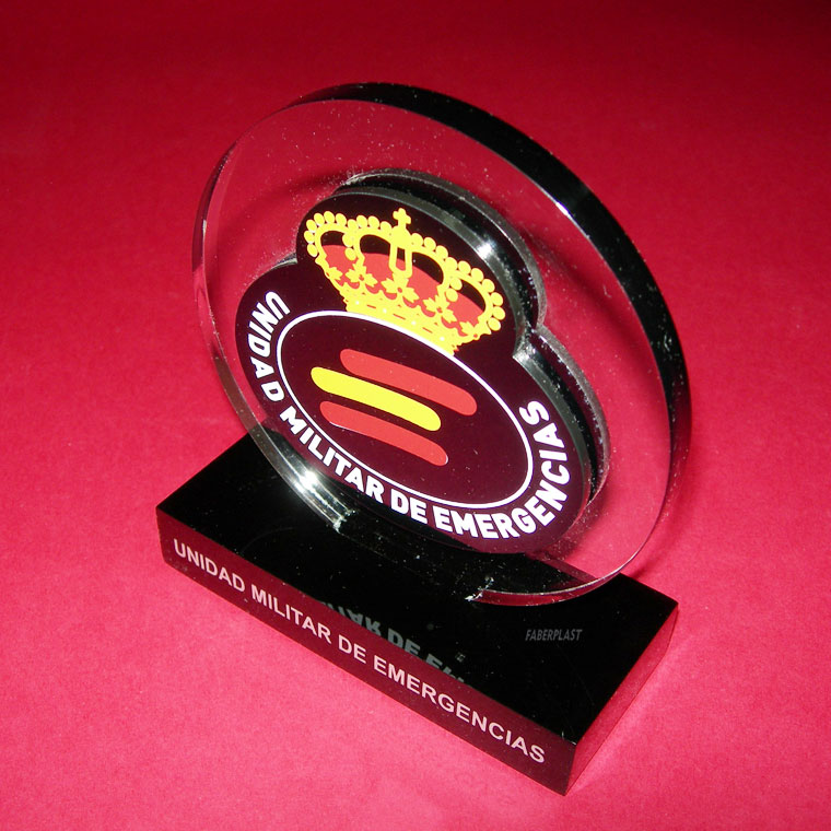 Trofeo regalo corporativo de metacrilato realizado a medida para la UNIDAD MILITAR DE EMERGENCIAS (UME)