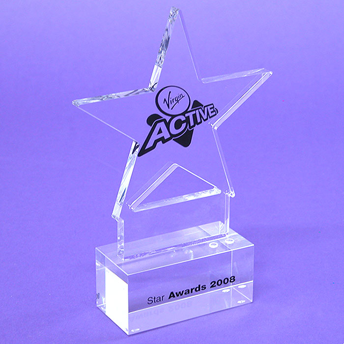 Trofeo de metacrilato realizado a medida para la compañia VIRGIN.