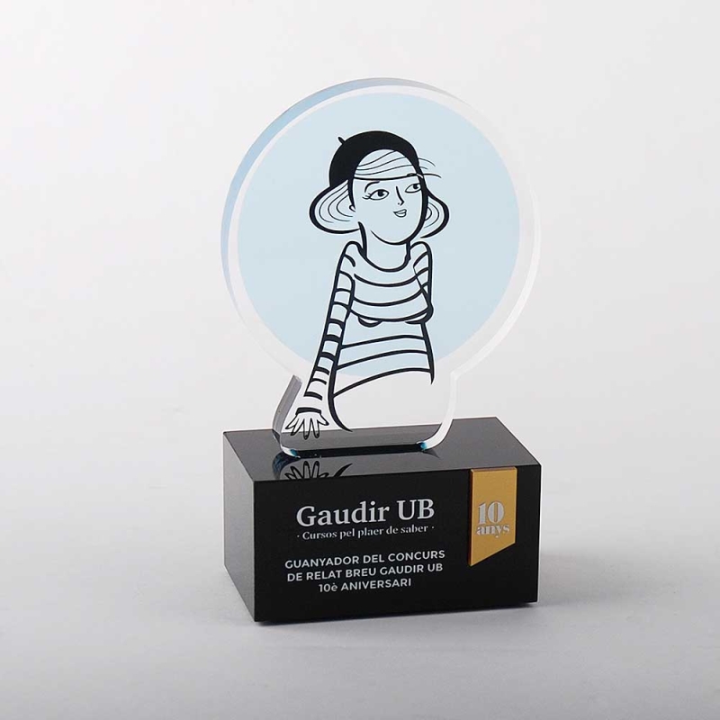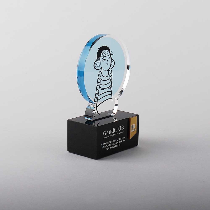 Trofeos de metacrilato realizado ad-hoc con motivo de los premios GAUDIR UB.