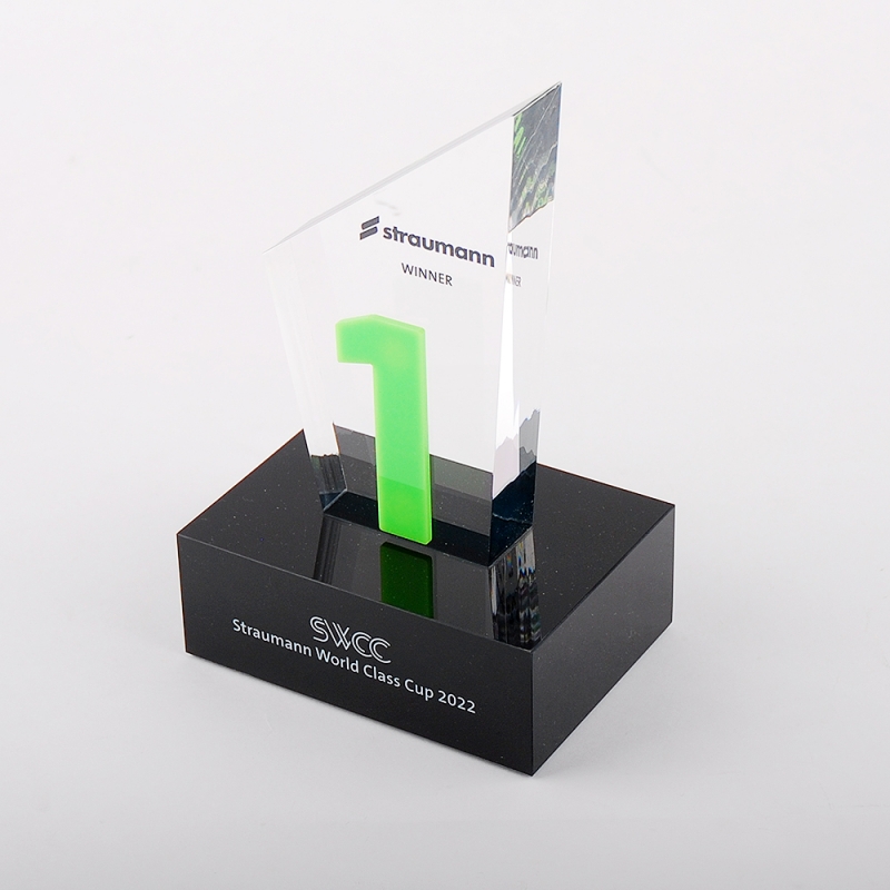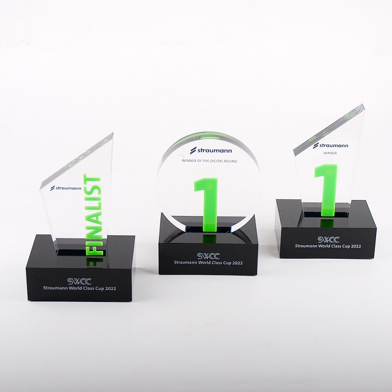 Trofeos de metacrilato realizado ad-hoc con motivo de los premios STRAUMANN WORLD CLASS CUP.