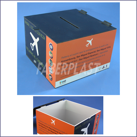 Urna Votación-Sorteos KRONENBOURG, realizada en PVC Blanco y decorada en impresión digital.